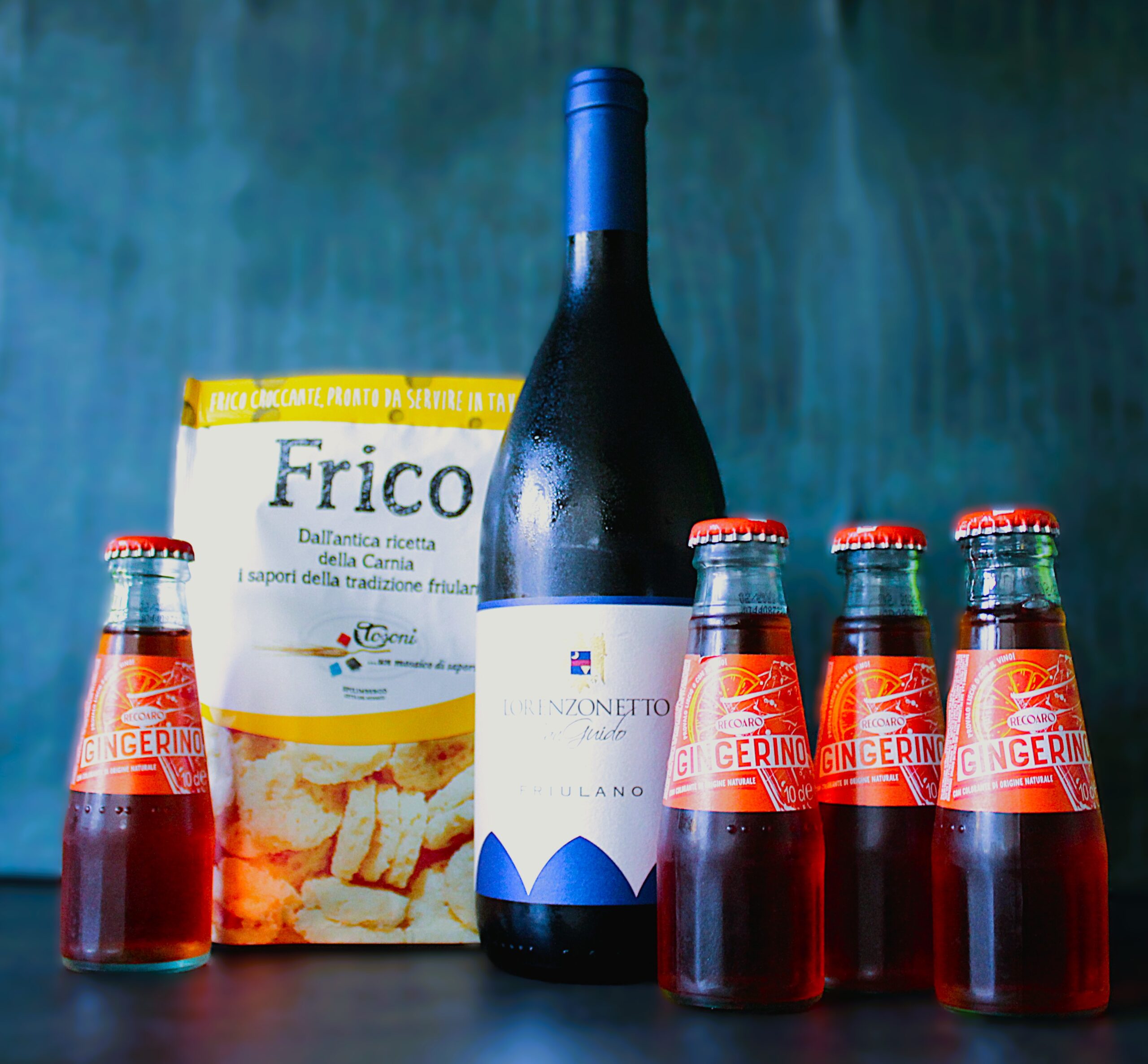 Tijd voor een aperitief! Met dit (cadeau) pakket maak je het klassieke aperitief van Friuli: Gingerino met Friulano wijn. En serveer het met de heerlijke snack Frico croccante, krokante kaasrondjes.